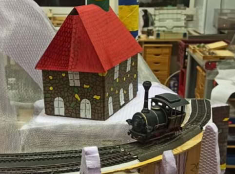 Und so entstand eine kleine Anlage, auf der Thomas, die kleine blaue Lok, mit ihren Freunden James und Tobi nach Herzenslust ihre Runden drehen und auch mal rangieren können.