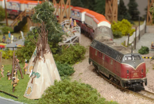 Zwei Freunde stellen eine Spur-Z-Modulanlage zusammen. Trotz des kleinen Maßstabs gibt es viel zu entdecken: Cowboys und Indianer, Camping mit Badesee, Käpt’n Blaubär und Hein Blöd.